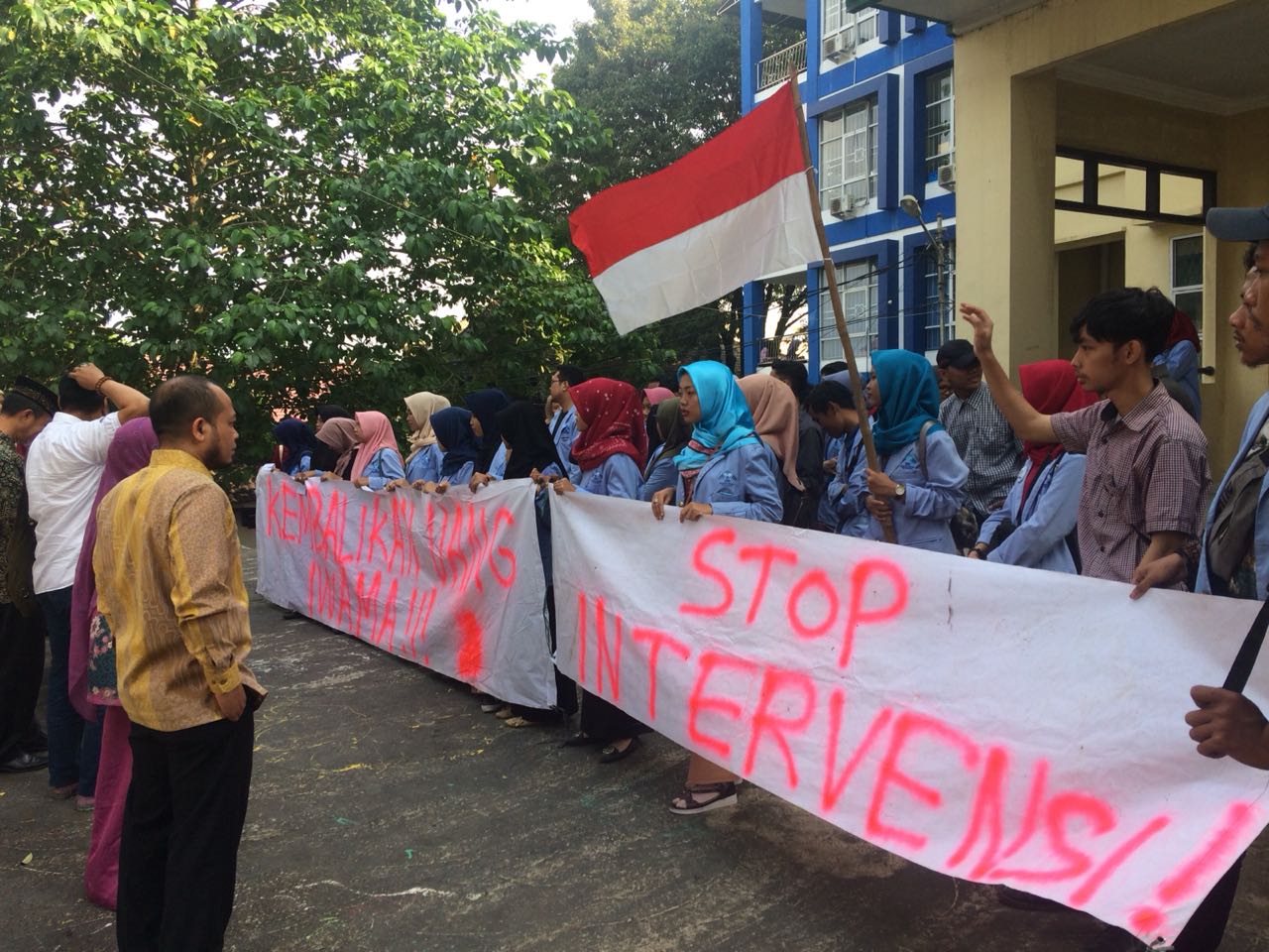 Selain itu, mahasiswa menuntut pihak rektorat harus menghentikan oknum-oknum yang melakukan intervensi dari