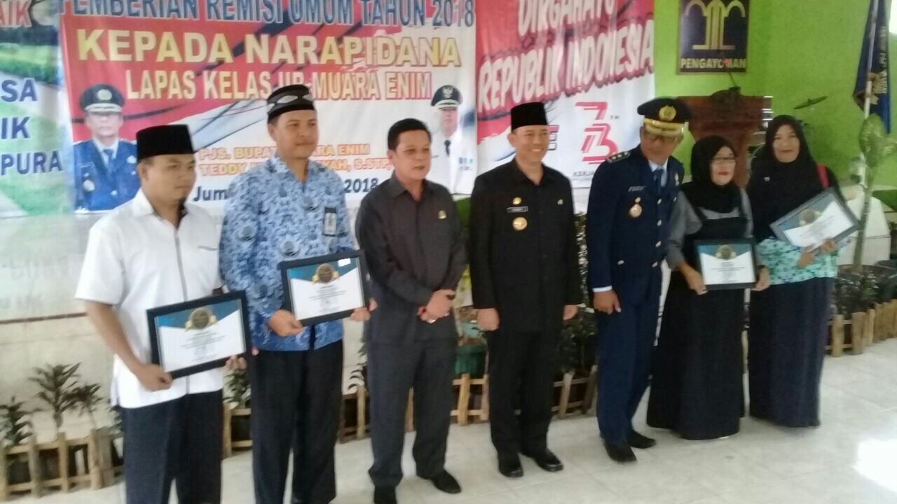 Selanjutnya, Presiden RI melalui Pemerintah Kabupaten Muara Enim dan Kakanwil Kemenkumham Muar Enim memberikan Remisi bagi tahanan yang ada di lapas kelas II/B Muara Enim.