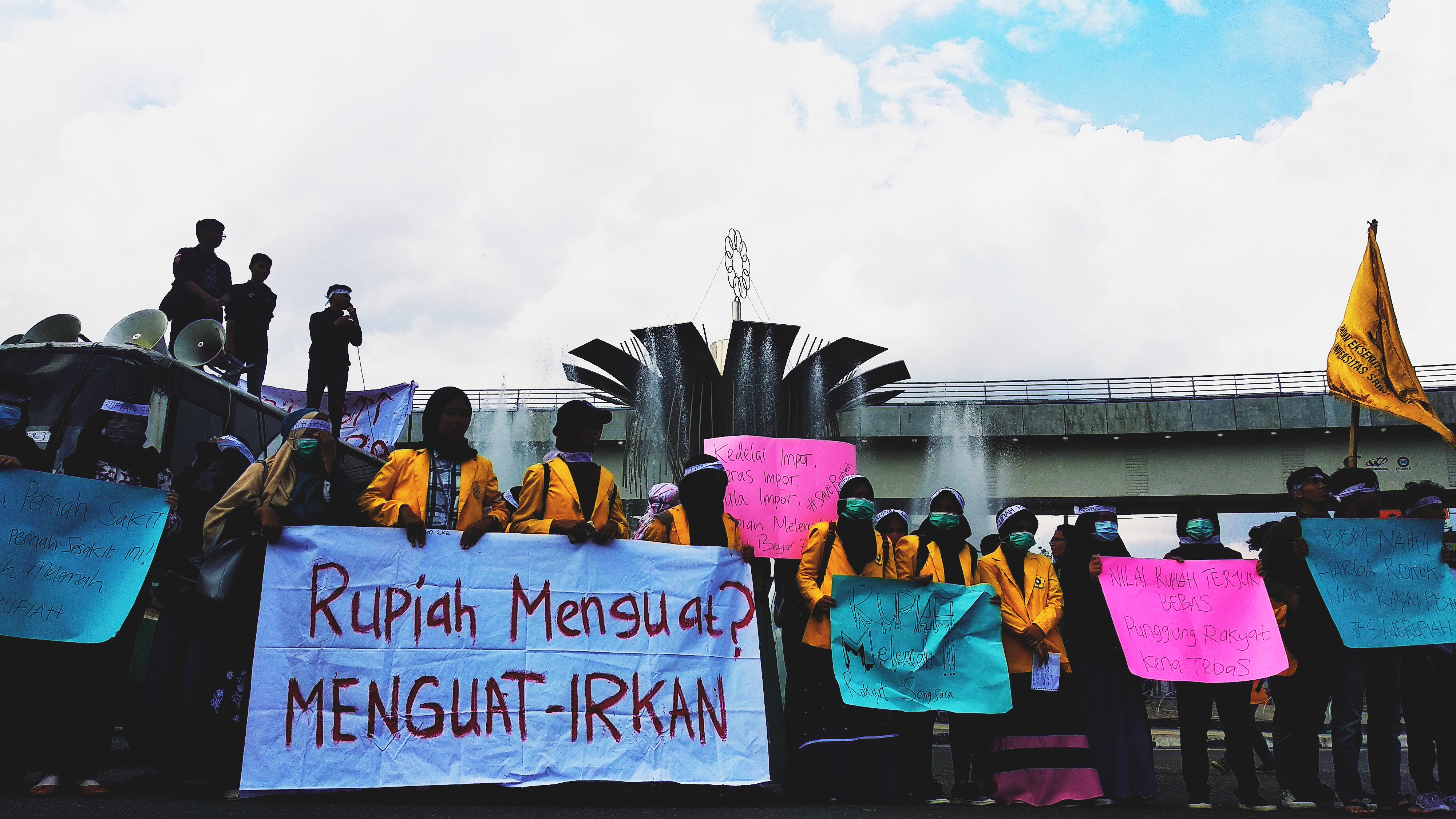 Aksi yang dilakukan Mahasiswa di Bundaran Air Mancur Masjid Agung,