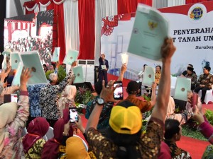 Sebelumnya Presiden Jokowi menyerahkan secara langsung 5.000 sertifikat kepada masyarakat yang berasal dari tiga kota dan kabupaten di Jawa Timur, yaitu Kota Surabaya, Kabupaten Sidoarjo, dan Kabupaten Gresik.
