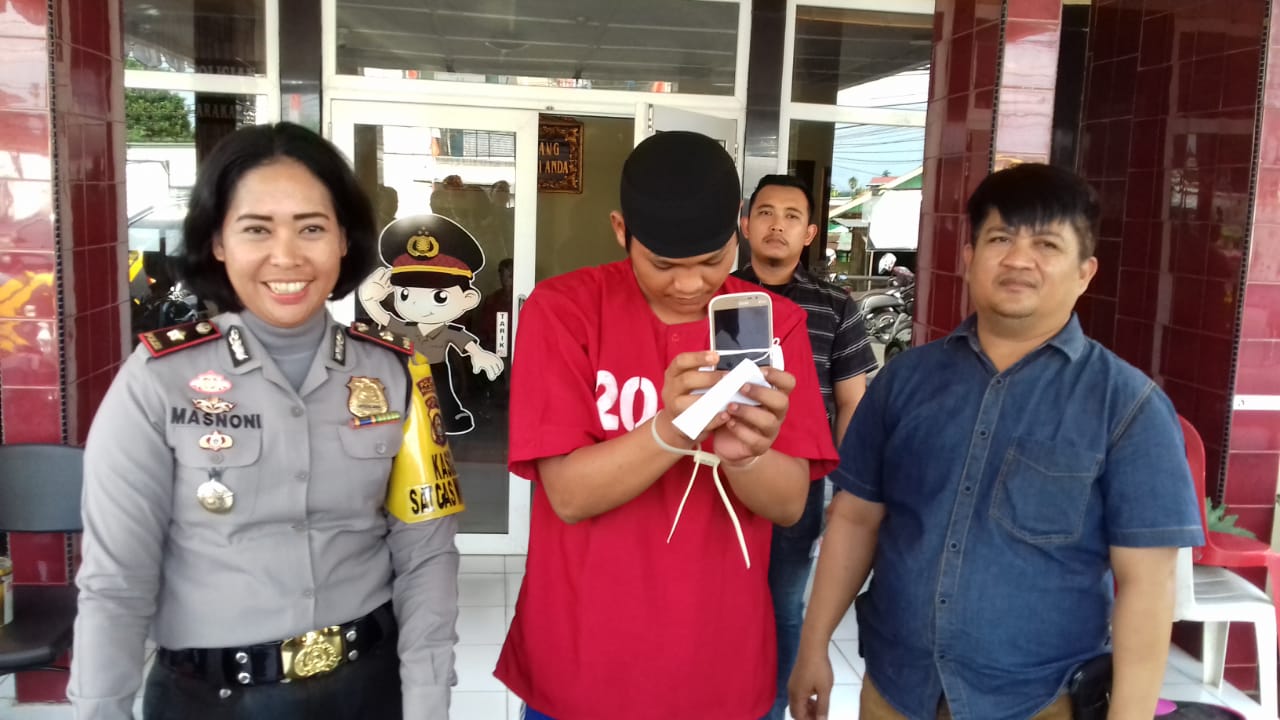 Setelah korban selesai membuat gado-gado pesanan mereka, barulah korban sadar bahwa Hp miliknya sudah hilang. Setelah itu korban melapor ke Polsek IB I tidak lama setelah itu petugas pun datang dan menangkap tersangka di lokasi kejadian.