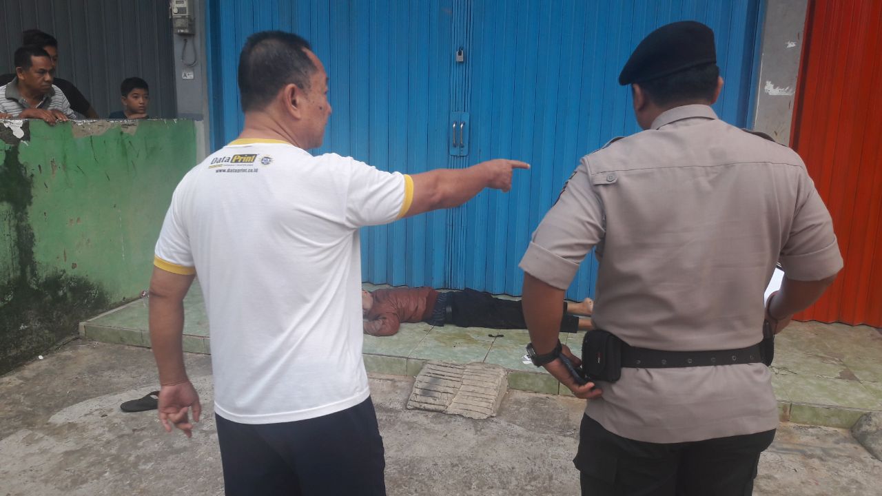 Jasad pria itu ditemukan dengan kondisi tertelungkup di depan salah satu ruko di lokasi. Warga yang melihat pun langsung melaporkannya ke Polsek Sukarami.
