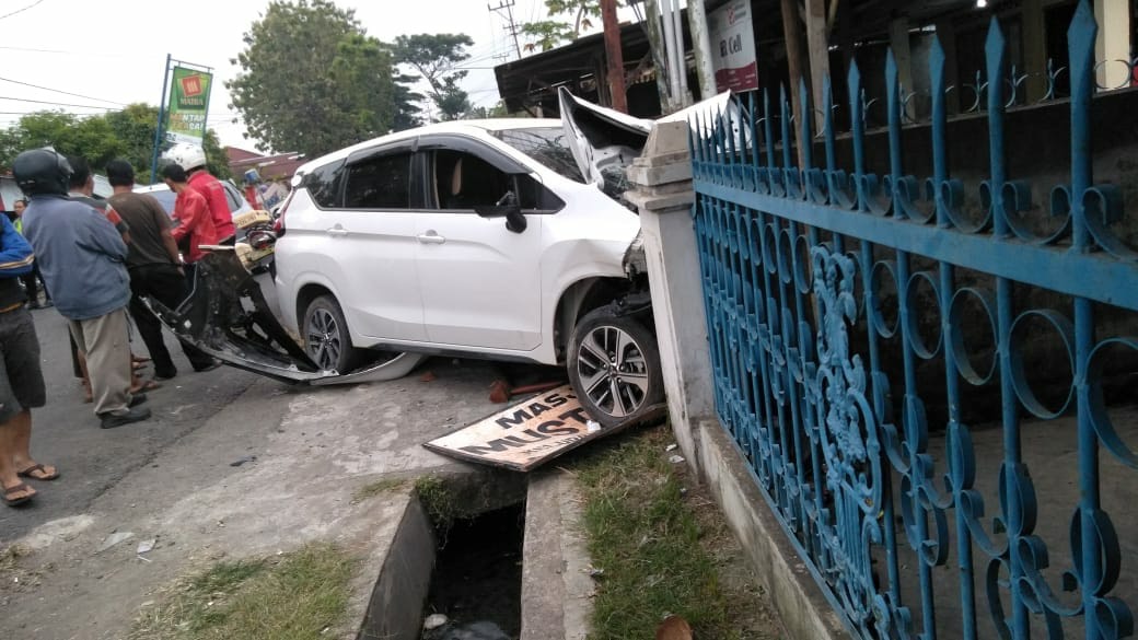 Hilang Kendali, Xpander Hantam Pengendara Motor