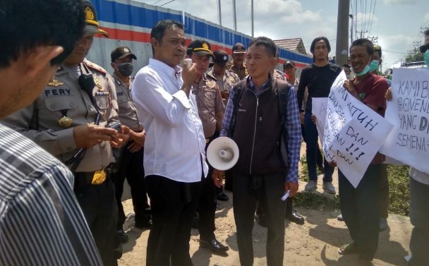 KORDANEWS – Puluhan warga yang tergabung dalam Masyarakat Peduli Pembangunan menggelar aksi demo ke kantor PT Waskita Karya PPKA Seksi III, Senin (1/10/2018).