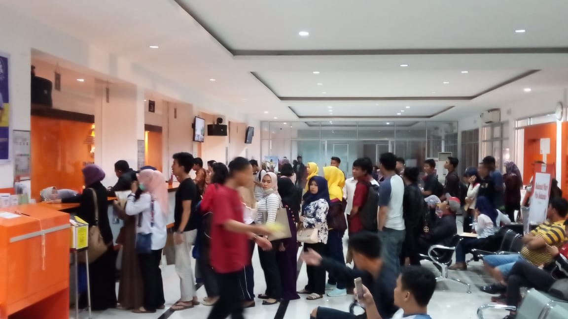 (CPNS), puluhan calon PNS berdesak-desakan untuk melakukan pengiriman amplop coklat dengan cara manual yakni melalui Kantor POS Palembang, Senin malam (15/8)