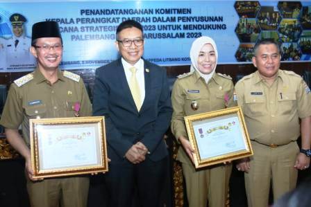 KORDANEWS – Lencana tanda kehormatan Mahawira Parama disematkan kepada Walikota Palembang, Harnojoyo dan Wakil Walikota Palembang, Fitrianti Agustinda sebagai tanda penghargaan atas pengabdian, kesetiaan, kejujuran, kecakapan dan kedisiplinannya dalam melakukan tugasnya sehingga dapat dijadikan teladan.