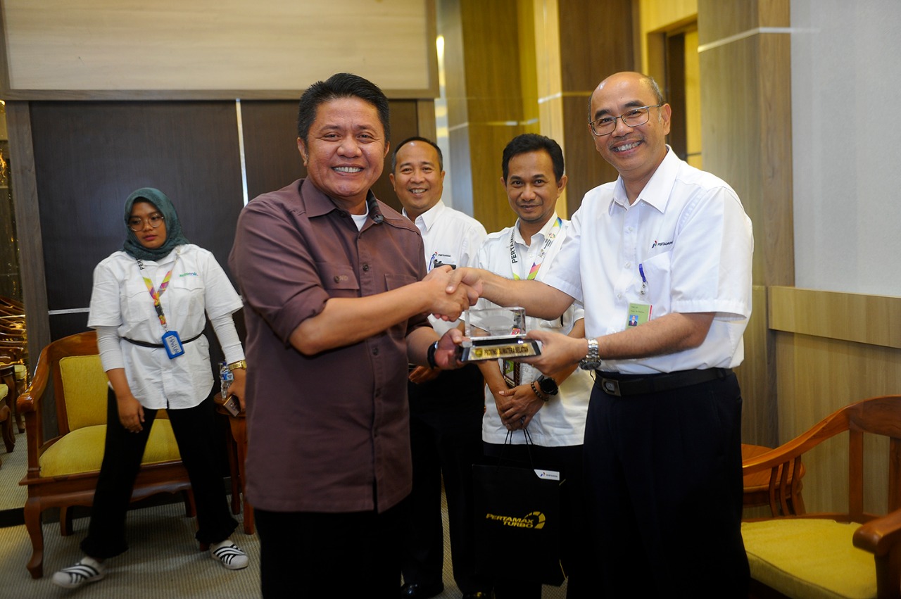 KORDANEWS-Gubernur Sumsel Herman Deru menerima audiensi General Manager Pertamina Refinery Unit III Plaju beserta rombongan di Ruang Tamu Gubernur, Senin (5/11). Dalam kesempatan itu HD menitipkan pesan agar Pertamina RU III memperhatikan pengaturan SPBU penyedia premium.