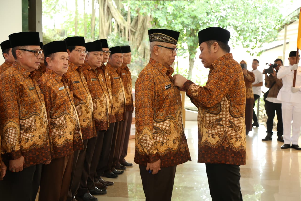 KORDANEWS- Gubernur Sumsel Herman Deru tak dapat membendung rasa harunya saat mengukuhkan pengurus Persatuan Wredatama Republik Indonesia (PWRI) Provinsi Sumsel periode 2017-2022, Rabu (7/11) di Griya Agung. Air matanya seketika menetes karena telah dipercaya menjadi Pembina Wredatama untuk mengurus para pensiunan yang sebagian besar telah berusia lanjut tersebut.