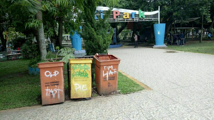 Kali ini, lokasi wisata Kambang Iwak (KI) pun menjadi sasaran oknum tidak bertanggung jawab seperti tempat sampah yang disediakan di depan pintu masuk KI persis di depan hotel Swarna Dwipa.
