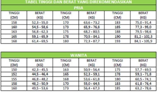 Nah setelah menghitung sudahkah tinggimu ideal dan sesuai dengan berat badanmu?