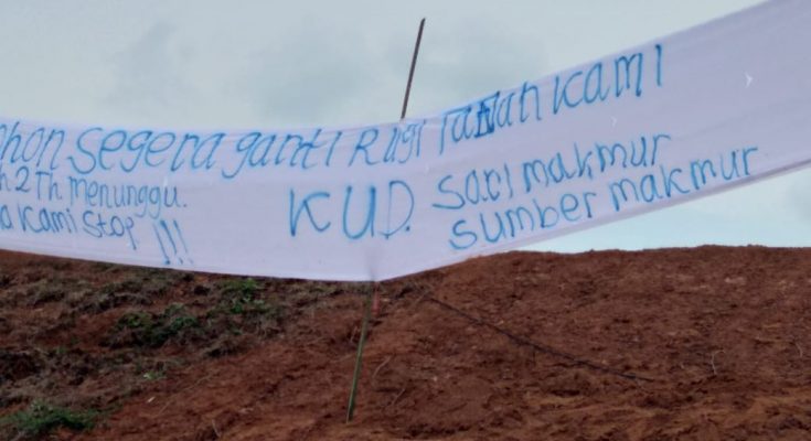KORDANEWS – Puluhan warga Desa Tanjung Sari 2, Kecamatan Lempuing Jaya Kabupaten Ogan Komering Ilir melakukan aksi protes dengan memasangan sepanduk untuk mempertanyakan uang ganti rugi lahan yang terdampak pembangunan jalan tol pematang panggang-kayuagung (PPKA) yang sampai saat ini belum juga diterima oleh pihak pemilik lahan.