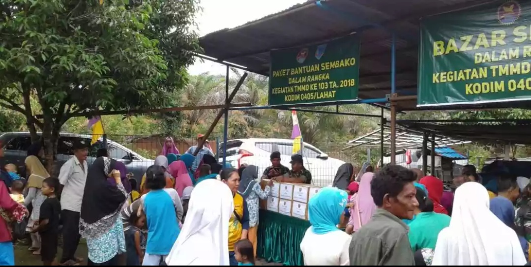 Ia menambahkan Kodim 0405 Lahat mensukseskan acara TMMD ke 103 tahun 2018 dengan mengadakan kegiatan bazar sembako untuk masyarakat.