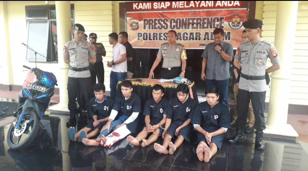 Para tersangka yakni Ikram (19) warga Desa Mingkik, Kelurahan Atung Bungsu, Kota Pagaralam, Pebriansyah (22) warga Desa Mingkik, Belgi (22) Warga Desa Muara Tenang,Kelurahan Kance Diwe, Kota Pagaralam, Rivaldo (18) warga Desa Tanjung Menang, Kota Pagaralam, serta Nando (22) warga Kecamatan Pendopo Lintang, Kabupaten Empat Lawang.