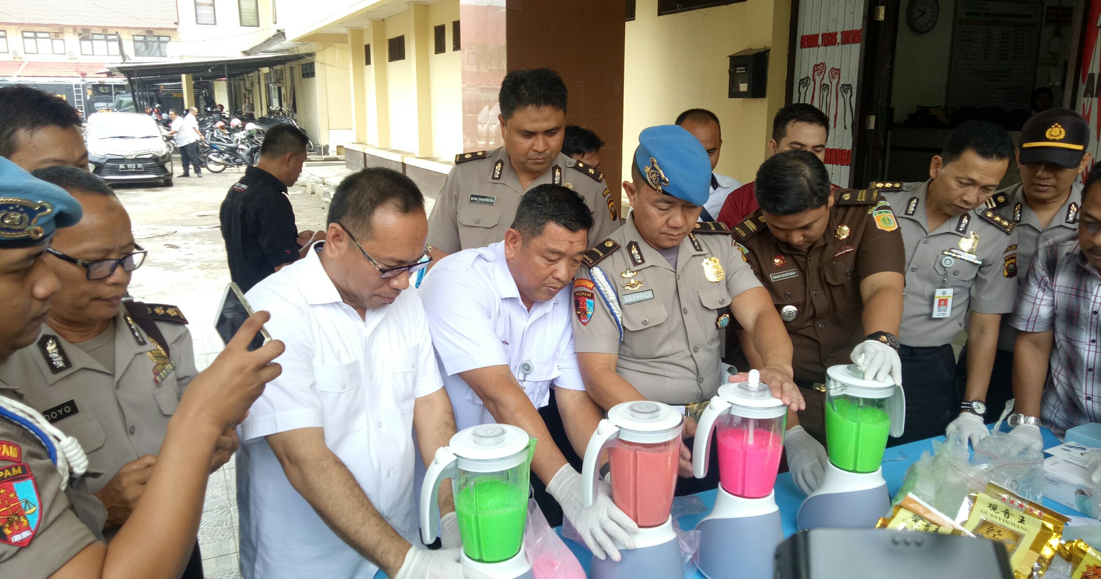 Setelah dinyatakan positif mengandung Methamphetamin barulah narkoba ini dimusnahkan dengan cara diblender yang juga turut disaksikan dua tersangka Antoni dan Rian Hidayat serta perwakilan Kejaksaan Tinggi Sumsel.