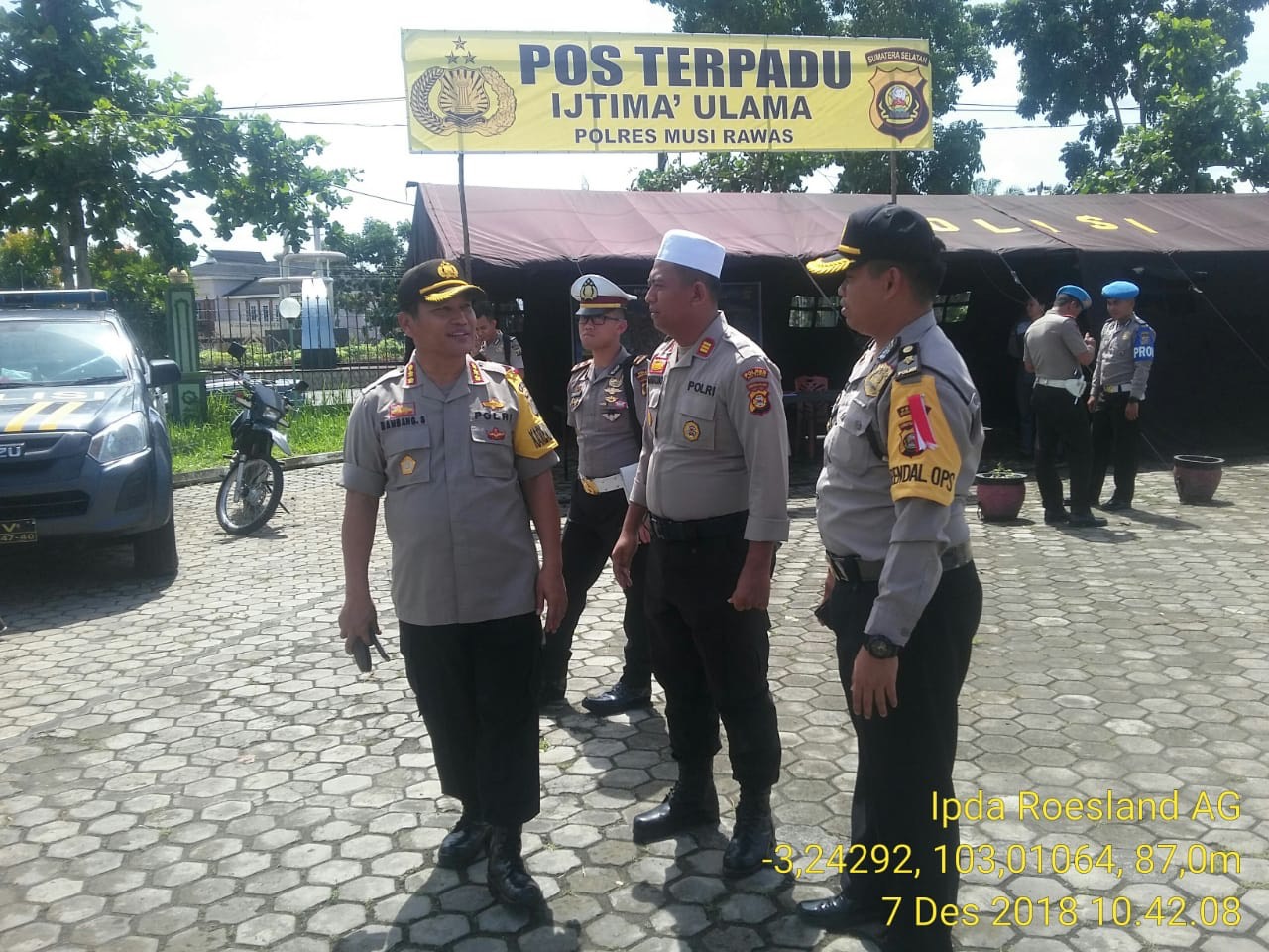 KORDANEWS – Karo Ops Polda Sumsel Bambang Suminto, SH., MH didampingi oleh Kabag Ops Polres Musi Rawas Kompol Handoko Sanjaya, SIK dan Kasat Sabhara Polres Musi Rawas mengecek personel yang melaksanakan pengamanan kegiatan ijtima’ ulama yang dilaksanakan di Masjid Agung Darusallam Kecamatan Muara Beliti Kabupaten Musi Rawas, Jum’at (7/12/2018)