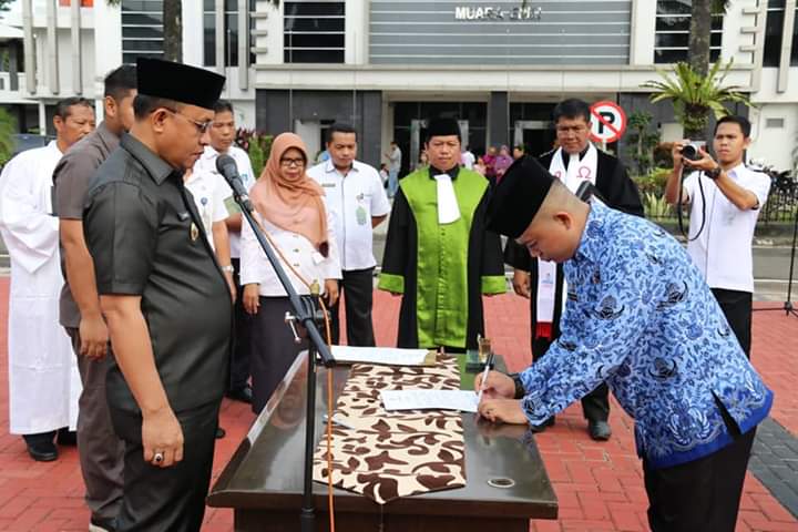 KORDANEWS – Sebanyak 117 Aparatur sipil negara (ASN) yang ada di ruang lingkungan Pemerintah Kabupaten Muara Enim hari ini diambil sumpah jabatan yang dilakukan oleh Wakil Bupati Muara Enim H Juarsah, bertempat di