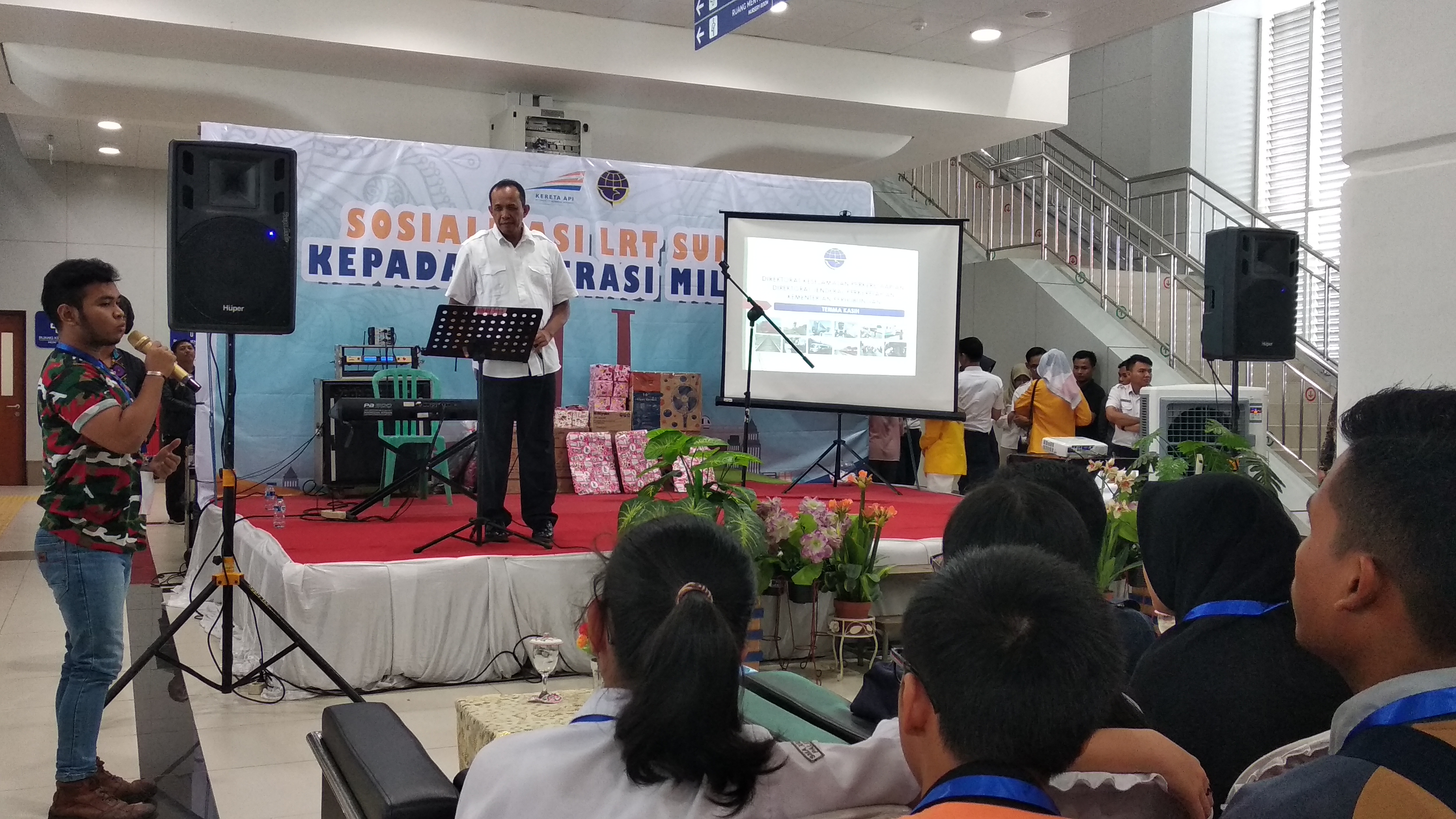 “Sosialisasi ini bertujuan untuk mengajak seluruh kalangan milenial di Palembang agar beralih mengunakan LRT Sumsel dalam melakukan mobilisasl ke Kampus, Sekolah, maupun jalan-jalan,” katanya, disela-sela sosialisasi di Stasiun LRT RSUD Fatimah KM 5, Sabtu (15/12).
