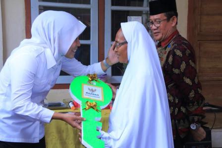 Fitri memberikan kunci rumah pasca dibedah oleh Baznas Kota Palembang