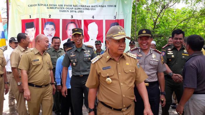 KORDANEWS- Bupati Ogan Komering Ulu (OKU), Drs H Kuryana Azis meninjau pelaksanaan Pemilihan Kepala Desa (Pilkades) serentak di OKU, Senin (10/10/2016) pagi.