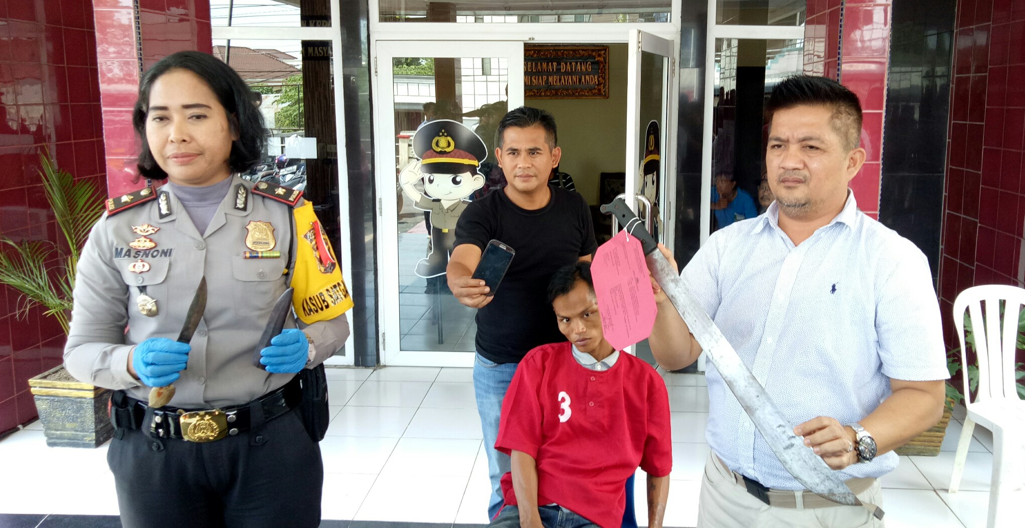 Modus yang digunakan pelaku mengambil motor, saat itu korban mengendarai motor lalu berhenti. Pelaku yang datang dari belakang lalu mengalungkan parang keleher korban, saat itu korban berontak sehingga parang milik pelaku berhasil diambil korban, namun pelaku berhasil membawa lari motor Honda Beat BG 4856 JAQ.