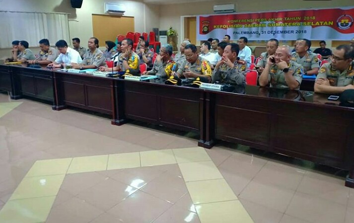 “Secara keseluruhan kejahatan konvensional menurun sebesar 18, 15 persen dari tahun 2017. Sedangkan kejahatan transnasional seperti narkoba meningkat dari 1759 kasus pada tahun 2017 naik menjadi 1911 kasus pada tahun 2018 dengan barang bukti sabu 107 kilogram lebih,”katanya disela sela pres rilis Anev tahun 2018 di Gedung Rekonfu Mapolda Sumsel Senin (31/12/18).