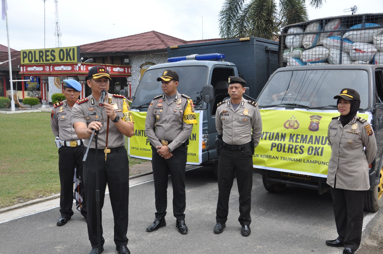 Polres OKI Kirim Bantuan Logistik untuk Korban Tsunami Selat Sunda