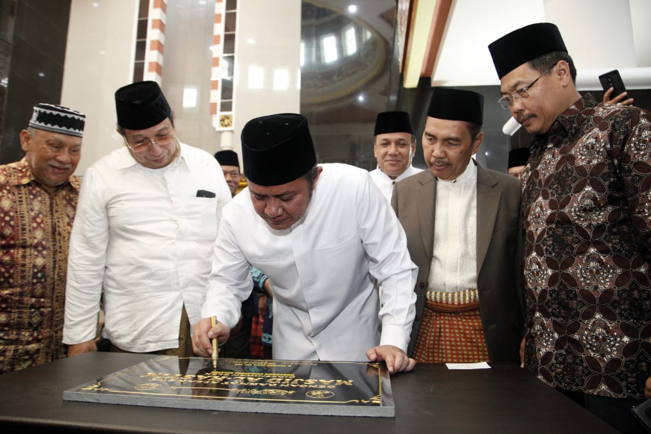 KORDANEWS-Gubernur Sumsel H Herman Deru menandatangani prasasti tanda diresmikan Masjid Al Hasyim yang berada di Jalan Soekarno Hatta No 33 Kelurahan Bukit Baru Kecamatan Ilir Barat I Palembang, Sabtu (5/1).