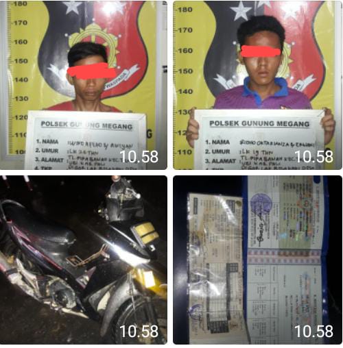 Mereka diduga melakukan pencurian sepeda motor milik pelapor WK (59) warga Talang Pipa Atas Lingkungan V RT 040 RW 013 KecamatanTalang Ubi, di Gelanggan Olahraga Remaja (GOR) lapangan bola kaki Desa Teluk Lubuk, Kecamatan Belimbing Kabupaten Muara Enim.