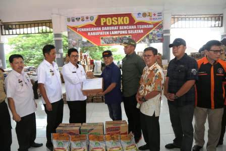 Acara penyerahan bantuan dilaksanakan di posko bencana yang terletak di pendopoan rumah dinas bupati Lampung Selatan dan diterima langsung oleh Sekda Kabupaten Lampung Selatan Ir. Fredy SM, M.M.