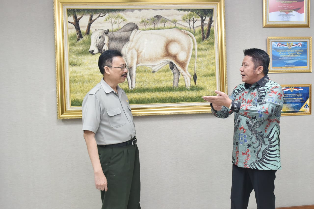 Hal tersebut diungkapkannya usai melakukan pertemuan khusus dengan Sekretaris Jenderal Kementerian Pertanian Ir. Syukur Iwantoro, MS. MBA, bertempat di Ruang Pola – Gedung A lantai 2 Kanpus Kementerian Pertanian RI, Senin (4/2).