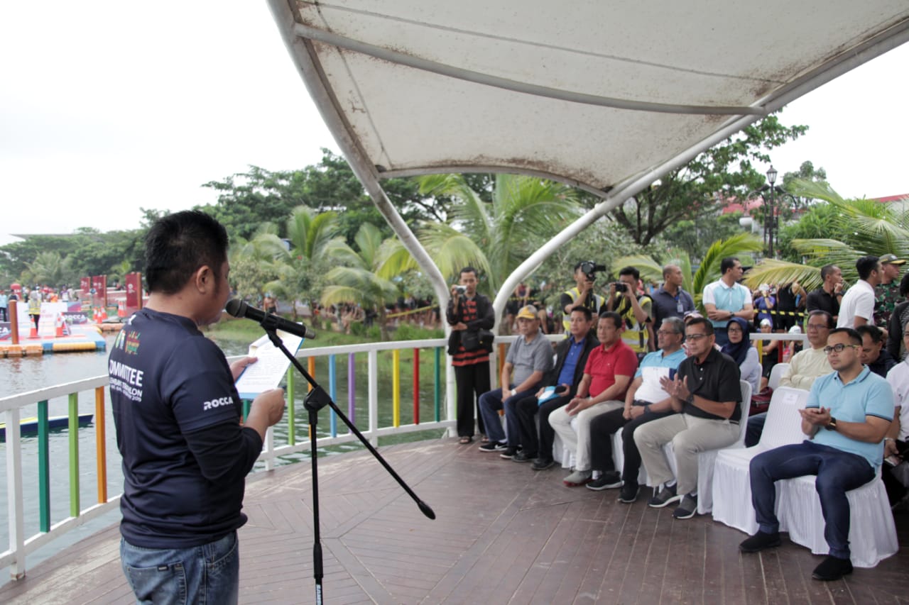 PALEMBANG- Gubernur Sumatera Selatan H Herman Deru membuka Palembang Triathlon 2019 yang diselenggarakan oleh PT Rocca Karya dengan Start di Danau Opi Jakabaring Sport City (JSC) Palembang, Minggu (10/2) pagi.