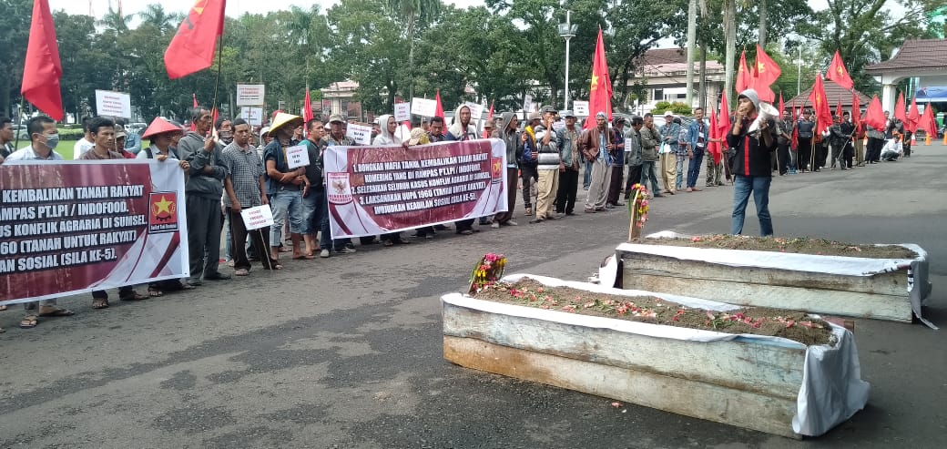 “Aksi kubur diri untuk menuntut tanah-tanah Komering agar dikembalikan ke masyarakat. Nah aksi kubur diri ini sebagai bentuk protes matinya keadilan,” katanya.