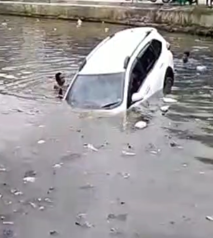 Anggota Lakalantas Polresta Palembang Pos 601 Brigadir Toto mengatakan, Sebuah mobil yang dikendarai oleh perempuan dan didalam nya ada dua anak perempuan jatuh kedalam damaan, diduga kendaran mencoba menkendaraan sepeda motor sehingga lepas kendali dan masuk kedalam damaan.