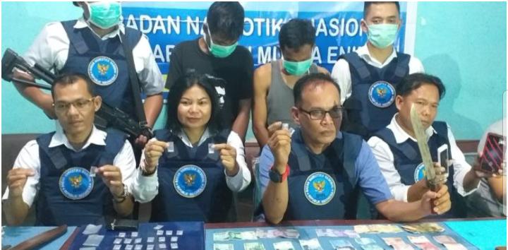 Kepala BNNK Muara Enim AKBP Abdul Rahman menyampaikan, penangkapan kedua pelaku berawal dari laporan masyarakat yang sudah resah dengan keberadaan pelaku.