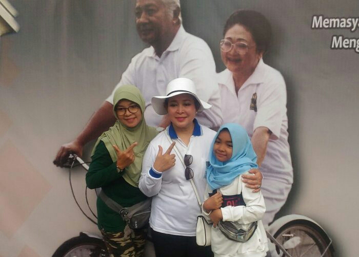 KORDANEWS – Ada yang tak biasa di areal car free day (CFD) di jalan Jenderal Sudirman/MH Thamrin Jakarta, Minggu 24 Maret 2019, yaitu poster besar Presiden Soeharto dan Ibu Tien bersepeda, dan orang-orang berebut berfoto di depannya bersama Siti Hediati Hariyadi, putri kedua almarhum Pak Harto yang akrab di masyarakat dengan panggilan Titiek Soeharto.