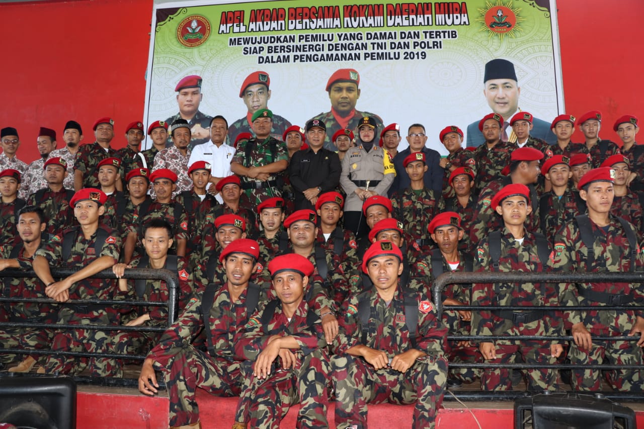 Mewakili Bupati Muba, H Dodi Reza Alex Noerdin Sekretaris Daerah Kabupaten Muba, Drs H Apriyadi MSi memimpin Apel Akbar Bersama Kokam, yang turut dihadiri Kapolres Muba AKBP Andes Purwanti SE MM dan Dandim 0401 Muba Letkol arm M Saufudin Khoiruzzamani S Sos, serta Kepala Kesbangpol dan Komisioner Bawaslu Kabupaten Muba, bertempat di Stable Berkuda Sekayu, Senin (15/4).