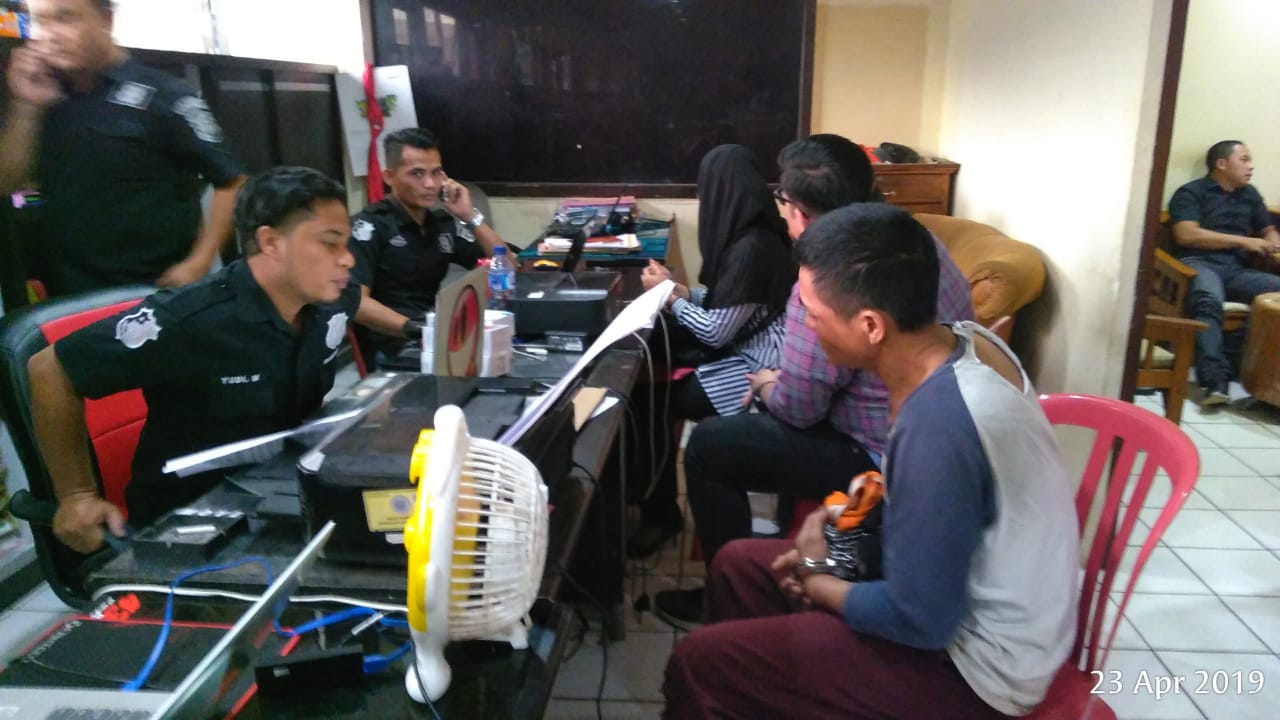 Pelaku diamakan dikediamannya dijalan Sosial. Lorong Kawat Kecamatan Sukarami Palembang Selasa (23/4) malam, lantaran telibat melakukan aksi bobol conter Hp.