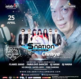 KORDANEWS-Bagi yang ingin menyegarkan ingatannya, dan bernostalgia bersama lagu-lagu populer Chrisye dari masa ke masa dan bernyanyi bersama band pengiring Flamel Band datanglah ke S-Lounge malam ini, Kamis, 25 April 2019 yang berada di lantai 4 Selebriti Entertainment Center Jl. Veteran No.1234 Palembang.