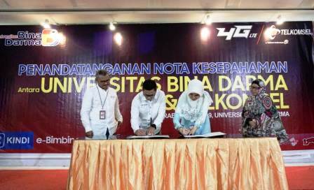KORDANEWS – Pertempat di Gedung Rektorat Bina Darma, hari ini Telkomsel menandatangani MoU dengan Universitas Bina Darma dalam menyediakan berbagai solusi digital kepada Universitas Bina Darma melalui Platform Aplikasi KINDI (Solusi Digital Kebutuhan Organisasi Terintegrasi) for Education. Nota kerjasama kedua pihak ditandatangani langsung oleh Rektor Universitas Bina Darma, Dr. Sunda Ariana, M.Pd., MM dan General Manager Youth and Community Telkomsel Area Sumatera, Agus Sumirat.