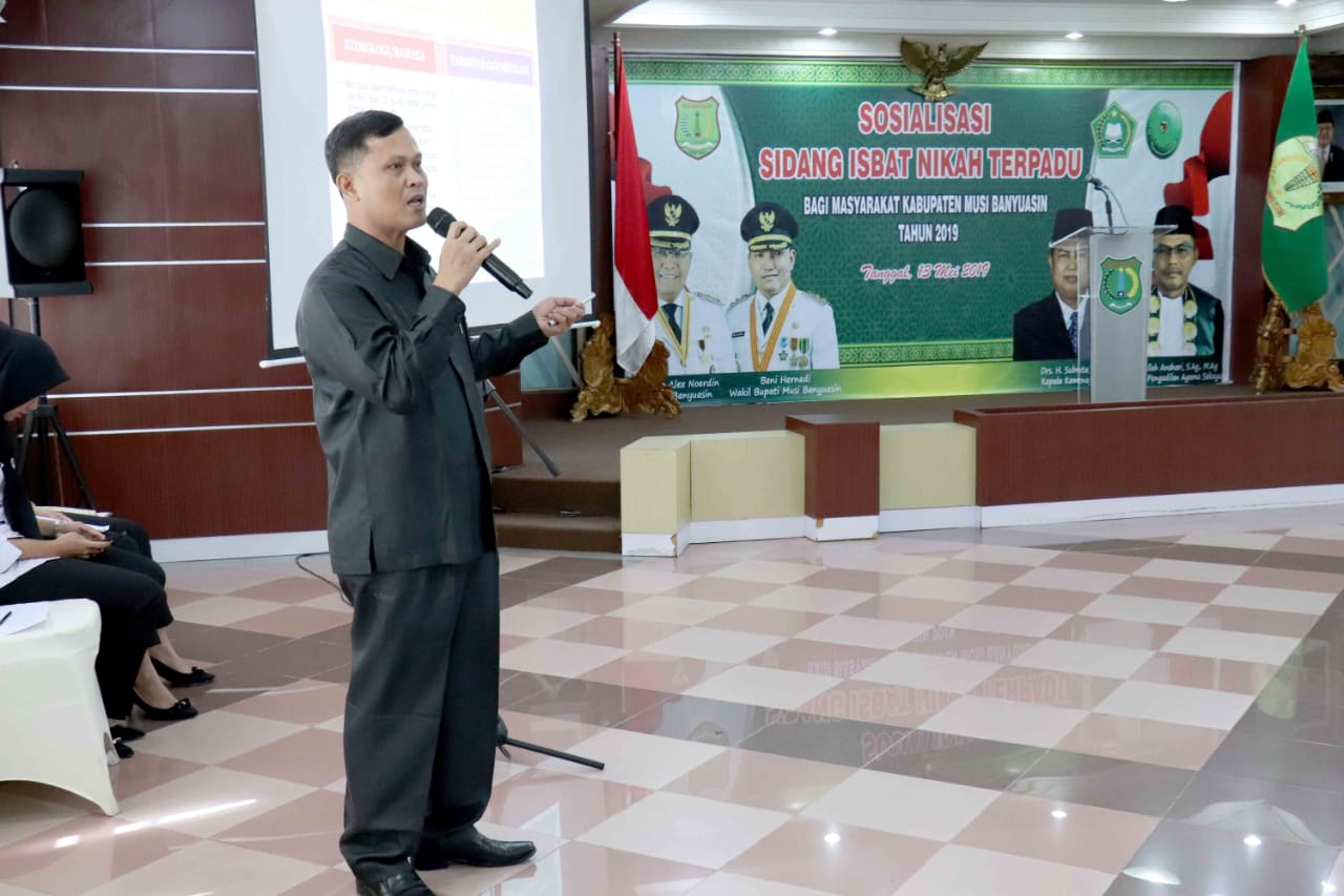 Mewakili Bupati Muba H Dodi Reza Alex Noerdin, Sekretaris Daerah Kabupaten Muba Drs H Apriyadi MSi membuka secara resmi Sosialisasi Sidang Isbat Nikah Terpadu. Dalam sambutannya mengatakan bahwa kegiatan ini salah satu bentuk kepedulian Pemkab Muba terhadap masyarakatnya, program ini diluncurkan karena terinspirasi banyaknya keluhan masyarakat Muba yang usia pernikahan sudah lama, ada yang sudah 30 tahun bahkan sampai 40 tahun sudah punya anak dan cucu yang secara syariat agama sudah resmi sebagai Pasangan Suami Istri (Pasutri), akan tetapi dari sisi catatan sipil mereka belum punya bukti dokumen sebagai Pasutri.