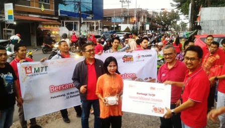 Usai melakukan jumpa pres dikantor Telkomsel Regional Sumbagsel, Jl, Jend. Sudirman, semua jajaran Telkomsel melakukan pembagian takjil kepada masyarakat yang melintas di perapatan lampu merah pasar kuto sebagai penghormatan kepada masyarakat yang menjalankan ibadah puasa di bulan Ramadhan. (eh)
