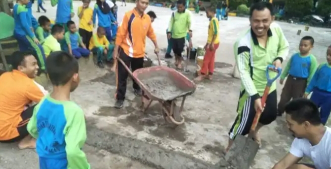 KORDANEWS – Seluruh dewan Guru dan Staf yang putra MIN 3 Muara Enim melakukan gotong royong membuat pelintang jalan atau istilah krennya polisi tidur di tengah jalan gerbang menuju halaman madrasah dan perehapan jalan menuju area madrasah yang sudah berlobang, Minggu (16/06/2019).