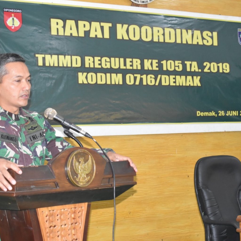 “Kita akan bangun jalan di lima titik, totalnya sepanjang 1,2 meter. Kalau jalannya bagus, tentunya mempermudah transportasi dan akses ekonomi warga,” kata Dandim Abi, seusai rapat koordinasi TMMD , di Makodim Demak, Rabu (26/6/2019).