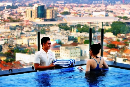 KORDANEWS-Hotel The Zuri & Convention Palembang salah satu hotel yang memiliki Sky Pool tertinggi di Kota Palembang, hadir dengan promo Sunday Funday dan menawarkan paket menginap hanya Rp. 555.000/kamar/malam.