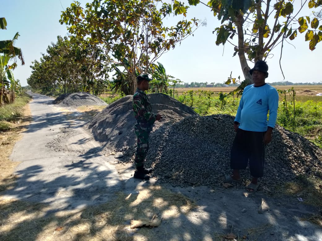 Adalah Bintara Pembina Desa (Babinsa) Desa Kalikondang, Serma Paijan yang ditugasi khusus untuk memantau semua material yang akan digunakan untuk membangun sejumlah sasaran fisik TMMD. ” Material pasir dan batu koral yang akan digunakan untuk pengecoran jalan yang menghubungkan antara Dukuh Krajan menuju Dukuh Rrigi kami pantau langsung dari segi kualitasnya,” tandas Serma Paijan.
