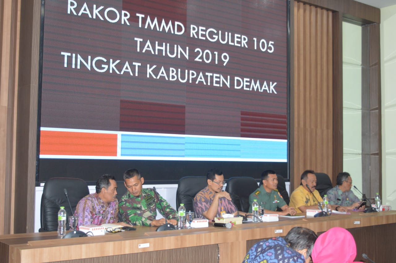 KORDANEWS-Bupati Demak melalui Sekda Kab Demak dr Singgih Setyono MKes mengapresiasi gelaran TMMD Reguler ke-105 Kodim 0716/Demak di Desa Kalikondang Kecamatan Demak. ”Masyarakat Demak, khususnya warga desa sasaran, Desa Kalikondang, Kecamatan Demak akan terdukung dengan adanya TMMD Reguler dari Kodim Demak,” Hal tersebut disampaikan pada saat pelaksanaan Rakor TMMD. Selasa 02-07-2019.