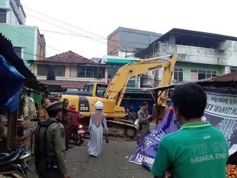 Peninjauan ini dilakukan oleh Bupati pasca dilakukan penertiban pasar pagi kota Muara Enim beberapa hari lalu. Beberapa alat eksavator masih terlihat sedang membersihkan sisa-sisa banguan liar dan sampah pedang kaki lima di Pasar Muara Enim.