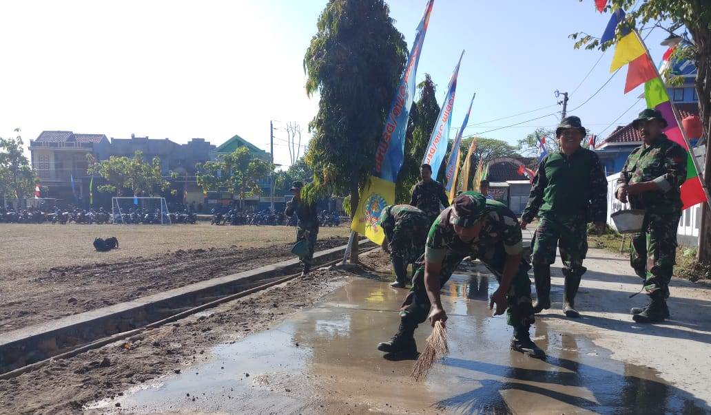 KORDANEWS – Agar kondisi seputar lapangan yang akan digunakan untuk menggelar upacara pembukaan TMMD Reguler ke-105 Kodim 0716/Demak benar-benar bersih, sejumlah personil TNI dengan dibantu warga “sikat” habis semua kotoran yang ada lokasi itu.