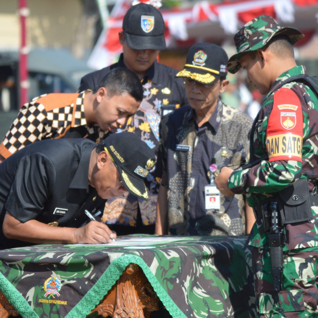 TMMD kali ini mengambil tema “Bersama TMMD membangun Untuk Meningkatkan Kesejahteraan Masyarakat “. Heru Setiadhi.M.Si Asisten Administrasi Sekda Privinsi Jawa Tengah yang mewakili Gubernur Jateng, sebagai Danup Mayor Arm Fatkhan Pasilat Korem 073/Makutarama dan diikuti sekitar 500 orang.
