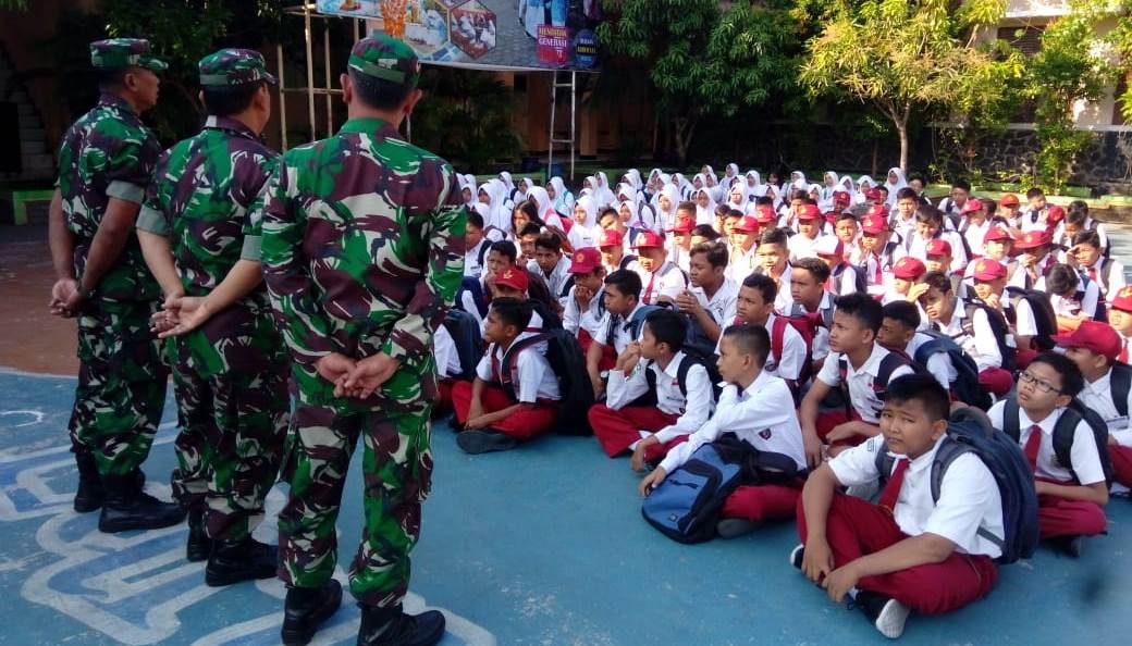 KORDANEWS – Disela-sela kesibukannya bekerja di lokasi TMMD, sejumlah Satgas TMMD Reguler ke-105 Kodim 0716/Demak, menyempatkan sosialisasi tentang wawasan kebangsaan (wasbang) kepada murid-murid SD yang ada di desa sasaran, Desa Kalikondang, Kecamatan Demak Kota.